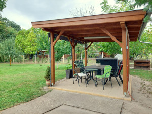 -  851 nm-es, parkosított telek – gyerekeknek és házi kedvenceknek is bőséges mozgástér, a fúrt kút pedig gazdaságos öntözést biztosít a kert ápolásához. A kerti kiülős kellemes helyszíne lehet baráti összejöveteleknek, családi grillezéseknek.
